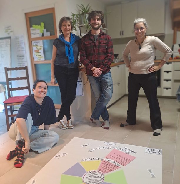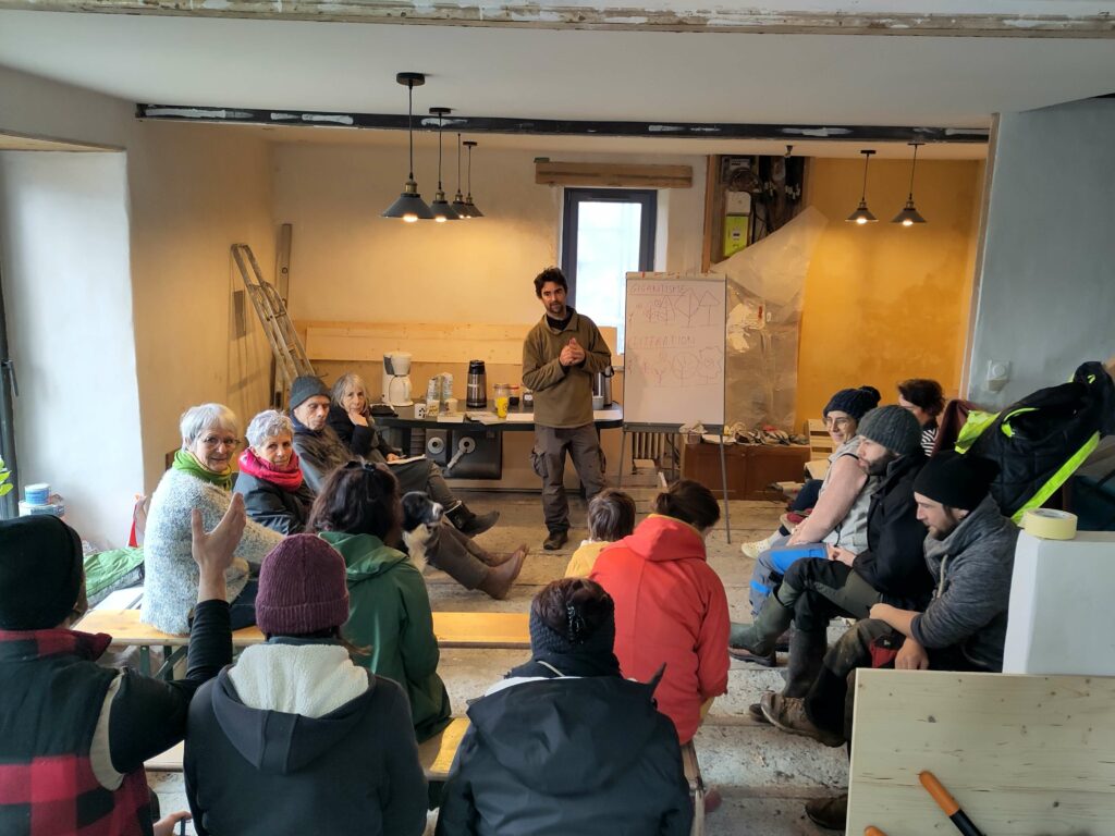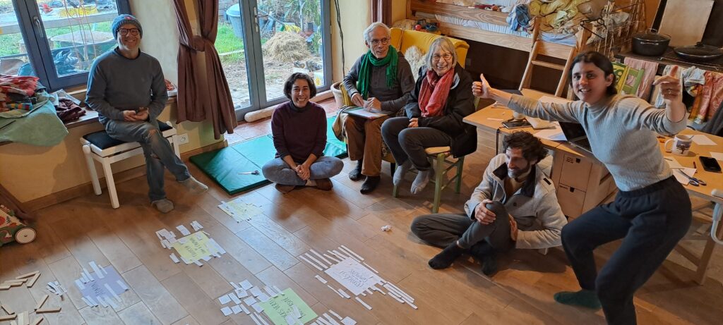 A Safre, ce sont des moments chaleureux pendant les jours de froid autour de bons repas mais aussi des moments de réflexions, toujours dans la bonne humeur. Nous nous sommes fait accompagner 2 jours par Maria Legrand, qui a grandi à l’Arche de Saint-Antoine et a une grande expérience des collectifs et communautés, afin de mieux nous structurer et fonctionner ensemble. Notre refonte de la gouvernance est toujours en cours… Par ailleurs, Anne-Claire et Maïté accompagne une graine d’oasis : Patricia, Emma et Mathias souhaite créer un écolieu en mettant toutes les chances de leur côté en se faisant accompagner.